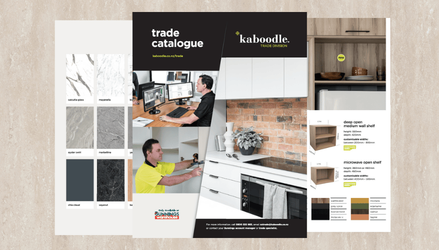 If you're short on time, the kaboodle trade division can create a design for you. Simply send us your clients’ floor plans, measurements and style and we will provide a 3D design and drawings for you to present back to your client. Easy as!
